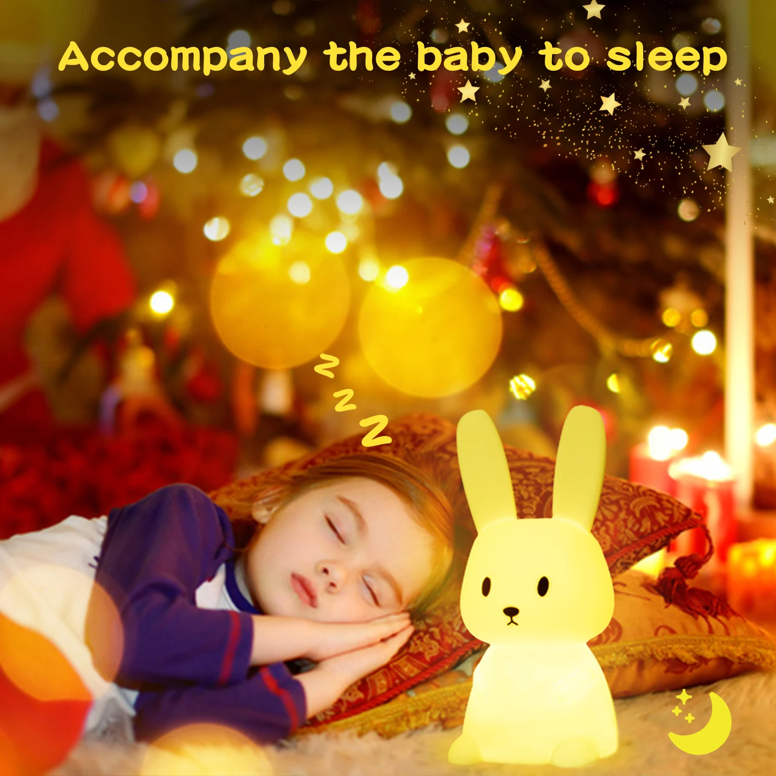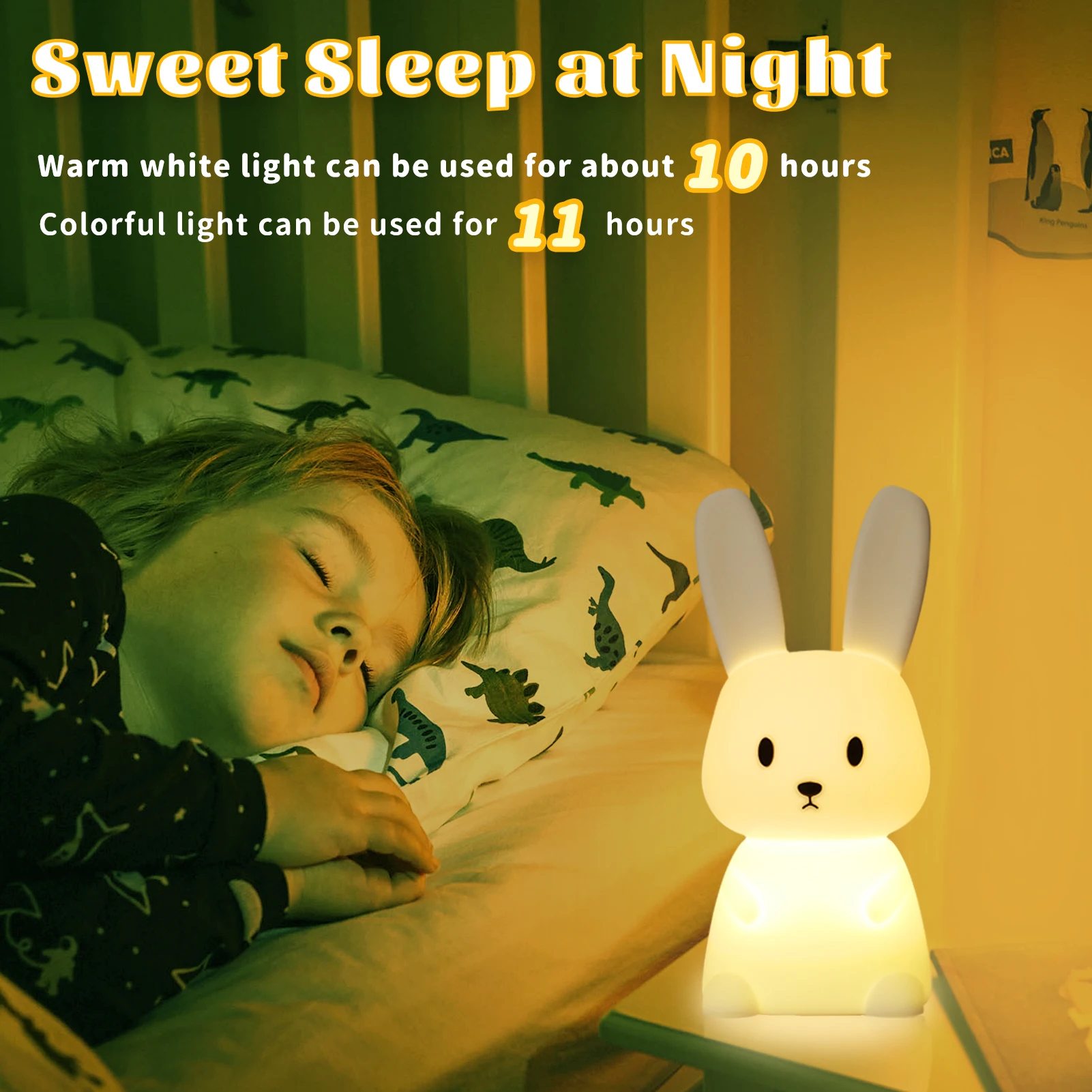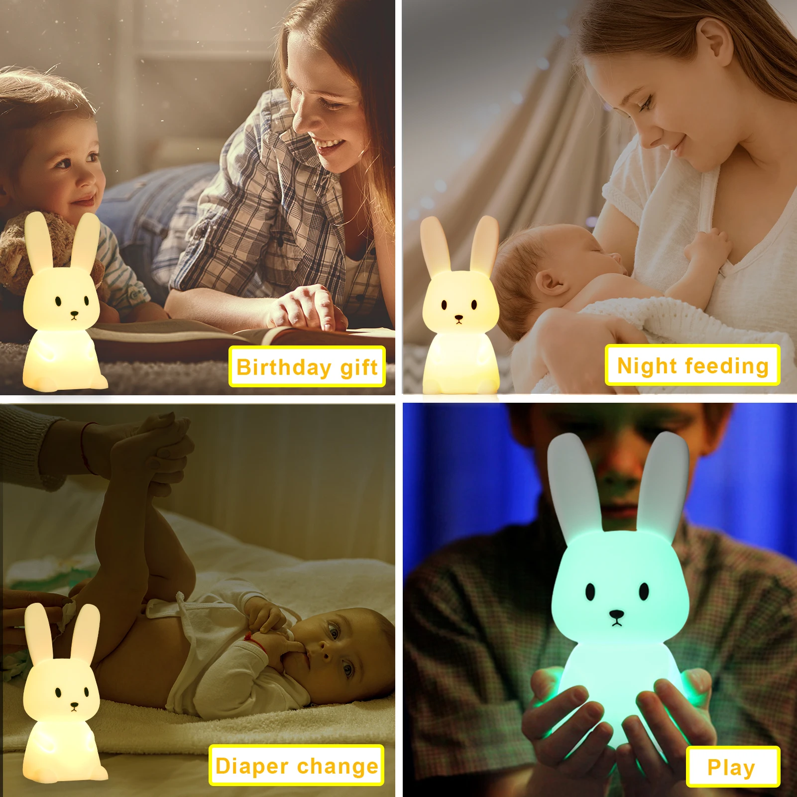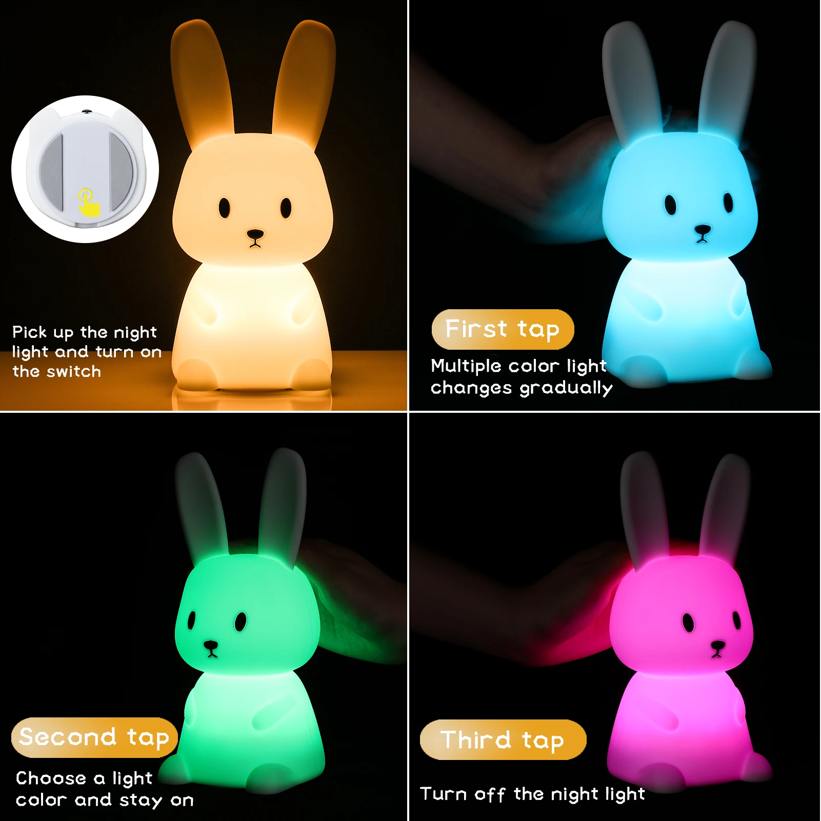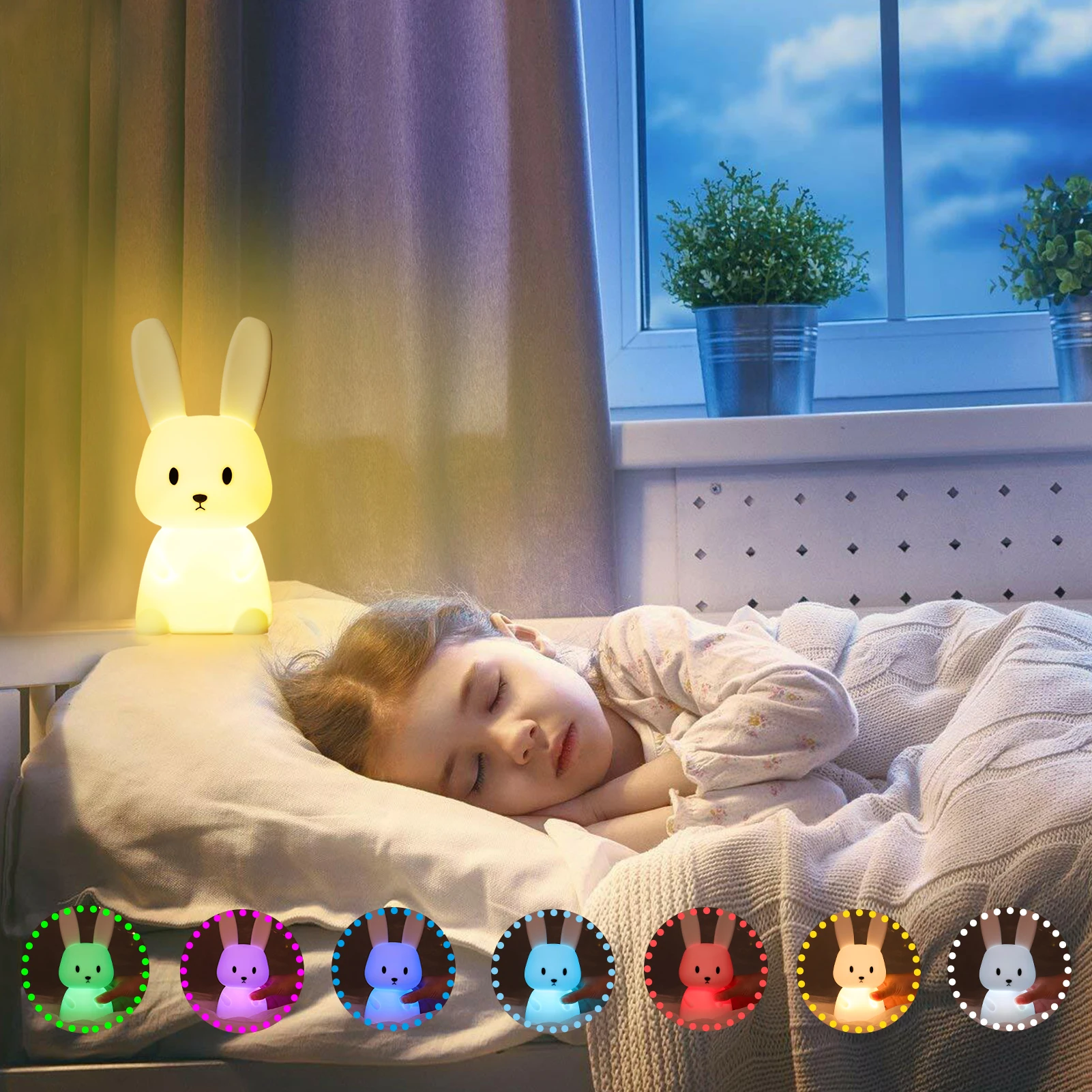 LED Rabbit Night Light Bedroom Lamp Touch Sensor Silicone Animal Lights Lantern Room Decor Cute Gift for Kids Children