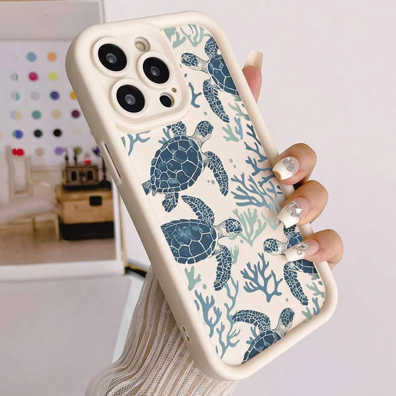 Colorful Sea Turtle Painted Soft Phone Case For iPhone 16 16E 11 12 13 Pro Max 15 14 Pro Max 7 8 Plus SE2 X XR XS Silicone Cover