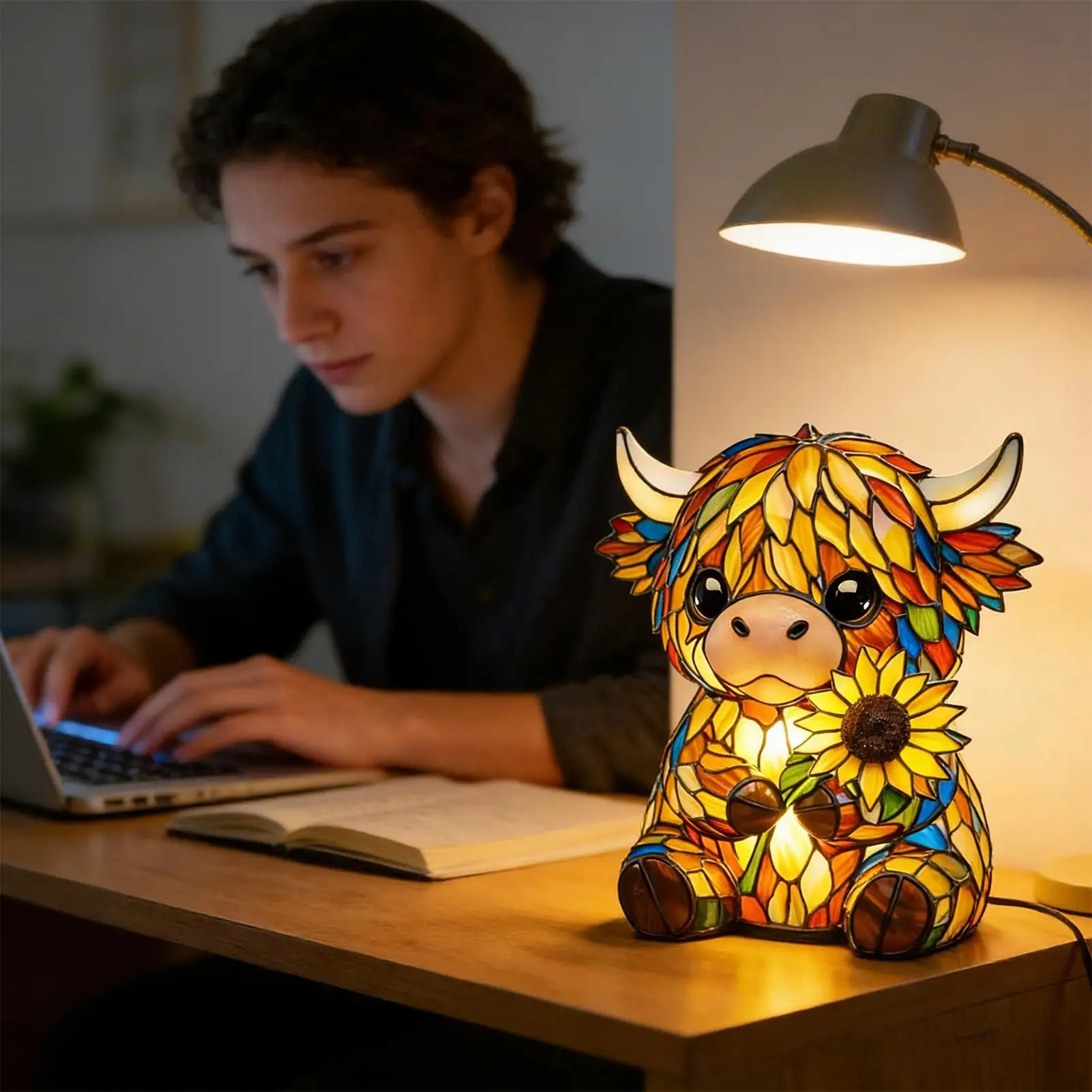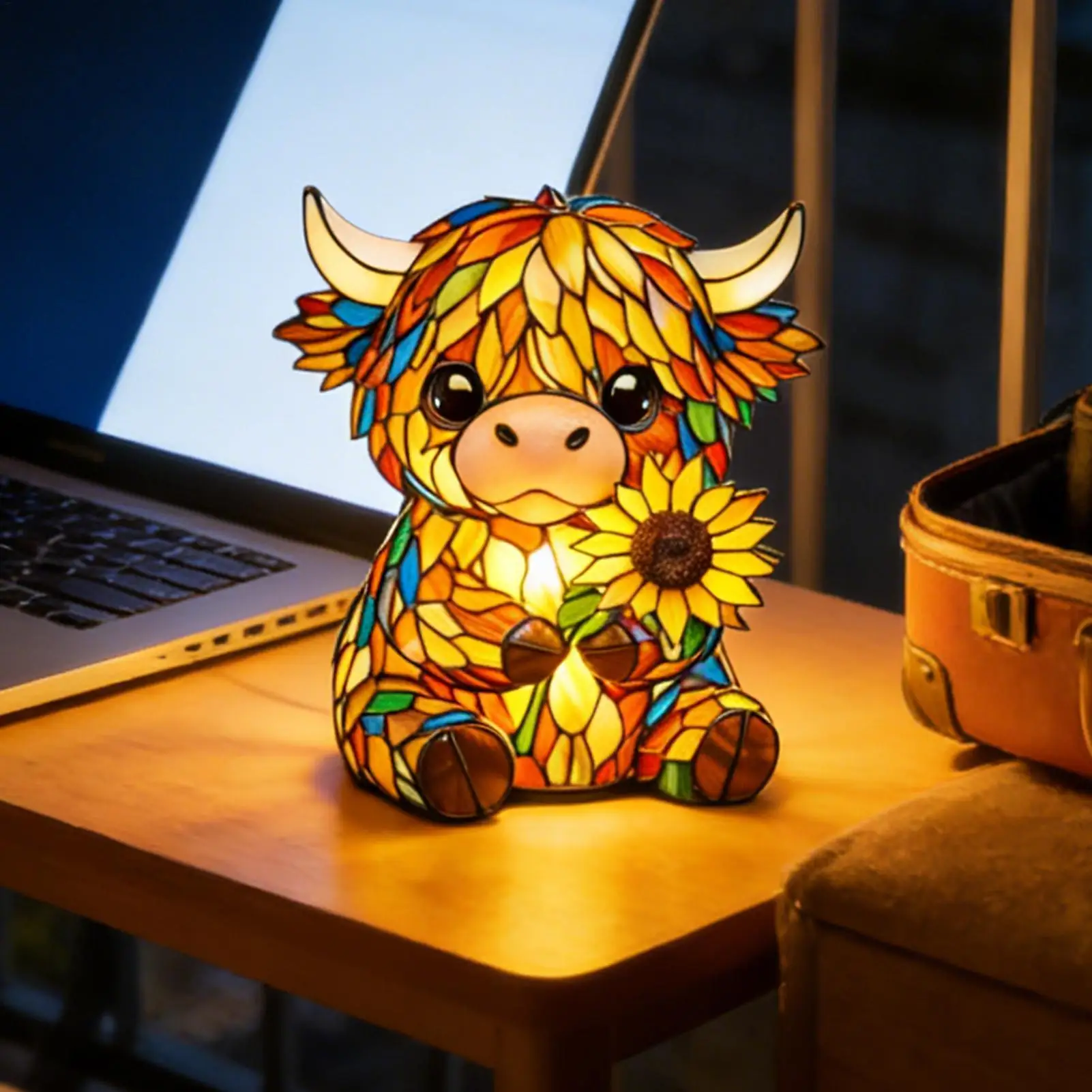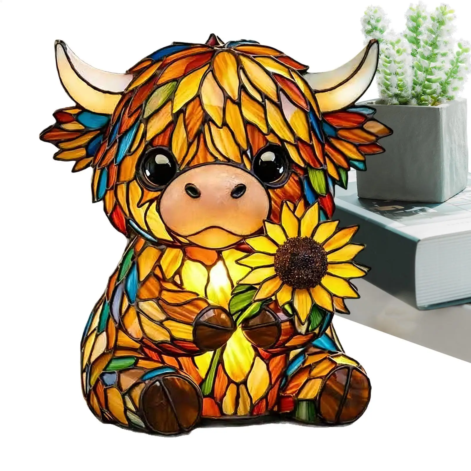 Bullet Points:1.Rustic Cow Accent Piece: Featuring vivid hair texture craftsmanship, the cow lamp provides warm ambient lighting suited for rustic settings, enriching home decor by combining artistic flair with utility, whether placed on countertops, bookshelves, or bedside tables for added elegance2.Soft Glow Lighting: The cow night light emits a soft glow that reduces visual strain, creating a relaxing atmosphere ideal for children's rooms or entryways while enhancing comfort during reading sessions with its sunset simulation feature3.Dynamic Sculpture: The cow light incorporates a hand-carved 3D texture ornament, offering multi-angle light texture display that transforms spaces into visually engaging environments, serving as a decorative home sculpture that enhances modern interiors or themed decor with its intricate craftsmanship4.Durable Resin Build: The kids night light features high density resin construction, ensuring long-lasting use, while precision light transmission creates a soothing glow that mimics natural nasal diffusion for comfort during bedtime routines in any child's room5.Charming Gift: This cute night light features adorable animal shapes that serve as perfect bookshelf decor, offering a warm glow to any space while delighting animal lovers; its unique design makes it a perfect present for those who appreciate creative and heartwarming home accents in living rooms or snug reading nooksThe animal night light creates a warm ambiance lighting, perfect for any space seeking rustic charm and cute aesthetics. This versatile ornament enhances home decor while providing gentle illumination, ideal for a bedroom or nursery. Its farmhouse-inspired design complements various interior styles, making it suitable for college rooms or as a bedside companion. The animal night light is an excellent choice for gifting on birthdays or housewarming occasions, adding character to any room. Designed with both functionality and style in mind, this lighting solution brings snug warmth and adorable appeal to your living environment, ensuring comfort and charm are always present.SpecificationMaterial: resinLighting: warm lightSize: 15cm / 5.9inchesWeight: 270gPower supply mode: USBPower cord length: 100cm / 39.37 inchesList1piece* cow lampNote:1. Due to lighting effects and display angles, there may be color differences in the product.2. Due to manual measurement, there may be errors in product size, please understand.