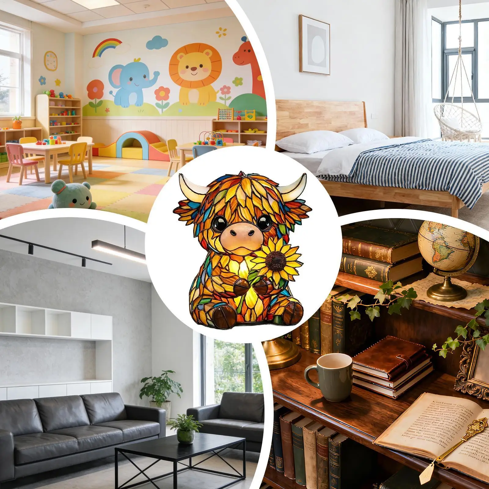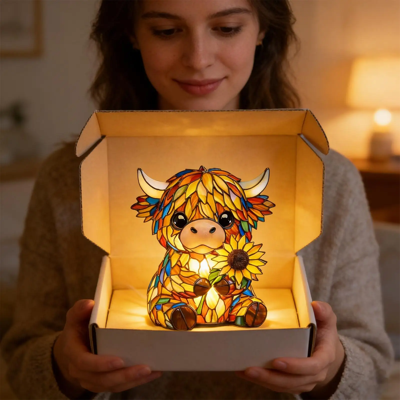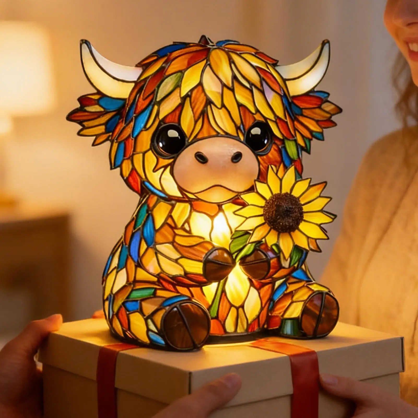 Bullet Points:1.Rustic Cow Accent Piece: Featuring vivid hair texture craftsmanship, the cow lamp provides warm ambient lighting suited for rustic settings, enriching home decor by combining artistic flair with utility, whether placed on countertops, bookshelves, or bedside tables for added elegance2.Soft Glow Lighting: The cow night light emits a soft glow that reduces visual strain, creating a relaxing atmosphere ideal for children's rooms or entryways while enhancing comfort during reading sessions with its sunset simulation feature3.Dynamic Sculpture: The cow light incorporates a hand-carved 3D texture ornament, offering multi-angle light texture display that transforms spaces into visually engaging environments, serving as a decorative home sculpture that enhances modern interiors or themed decor with its intricate craftsmanship4.Durable Resin Build: The kids night light features high density resin construction, ensuring long-lasting use, while precision light transmission creates a soothing glow that mimics natural nasal diffusion for comfort during bedtime routines in any child's room5.Charming Gift: This cute night light features adorable animal shapes that serve as perfect bookshelf decor, offering a warm glow to any space while delighting animal lovers; its unique design makes it a perfect present for those who appreciate creative and heartwarming home accents in living rooms or snug reading nooksThe animal night light creates a warm ambiance lighting, perfect for any space seeking rustic charm and cute aesthetics. This versatile ornament enhances home decor while providing gentle illumination, ideal for a bedroom or nursery. Its farmhouse-inspired design complements various interior styles, making it suitable for college rooms or as a bedside companion. The animal night light is an excellent choice for gifting on birthdays or housewarming occasions, adding character to any room. Designed with both functionality and style in mind, this lighting solution brings snug warmth and adorable appeal to your living environment, ensuring comfort and charm are always present.SpecificationMaterial: resinLighting: warm lightSize: 15cm / 5.9inchesWeight: 270gPower supply mode: USBPower cord length: 100cm / 39.37 inchesList1piece* cow lampNote:1. Due to lighting effects and display angles, there may be color differences in the product.2. Due to manual measurement, there may be errors in product size, please understand.