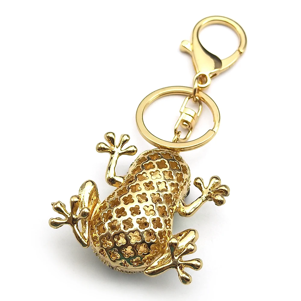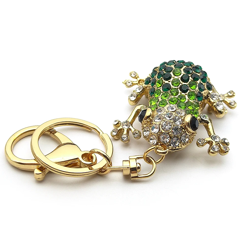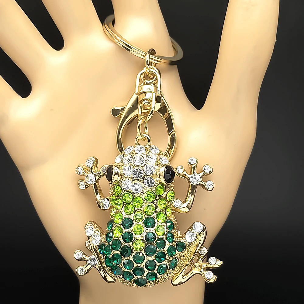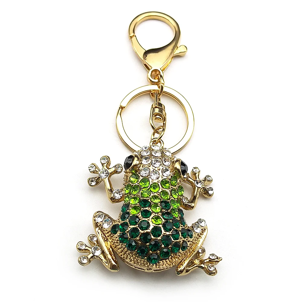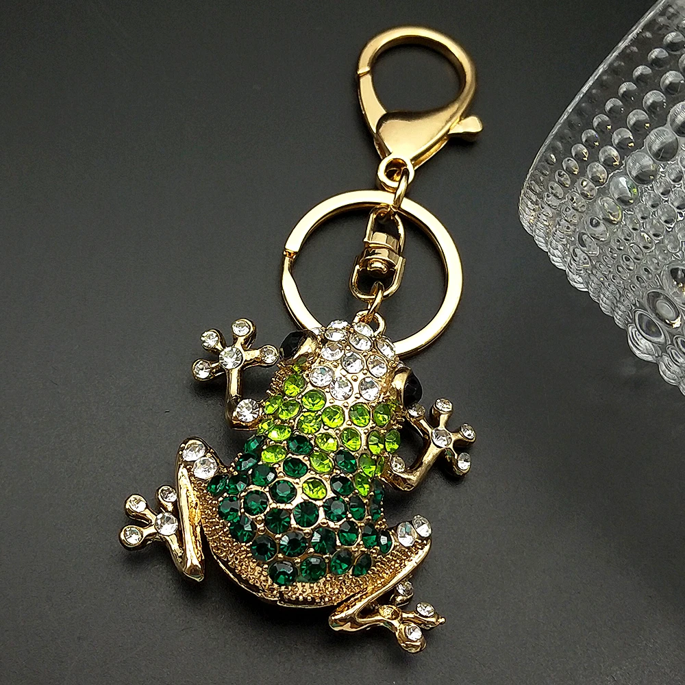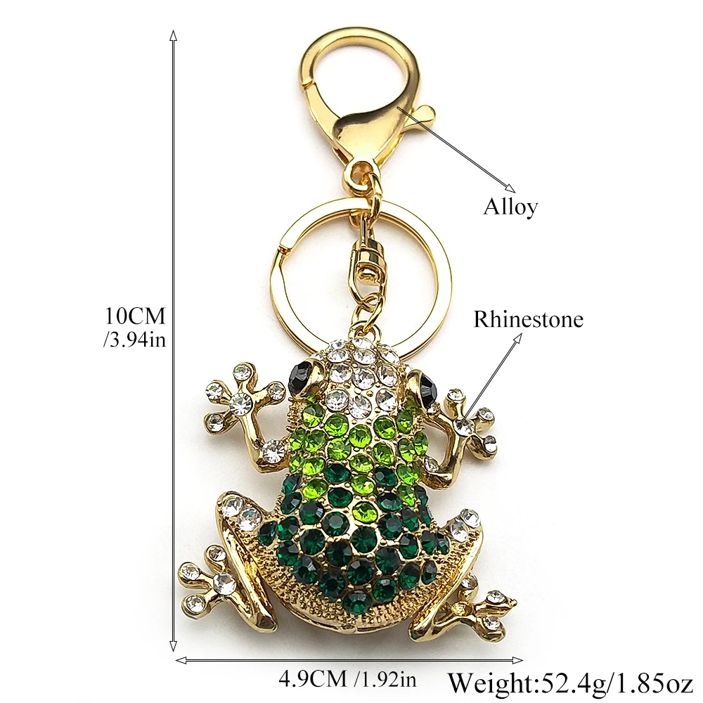 - Green Frog Rhinestone Keyring For Women Men Full Crystal Kawaii Water Animal Backpack Hanging Decor Keychain Jewelry Gifts
